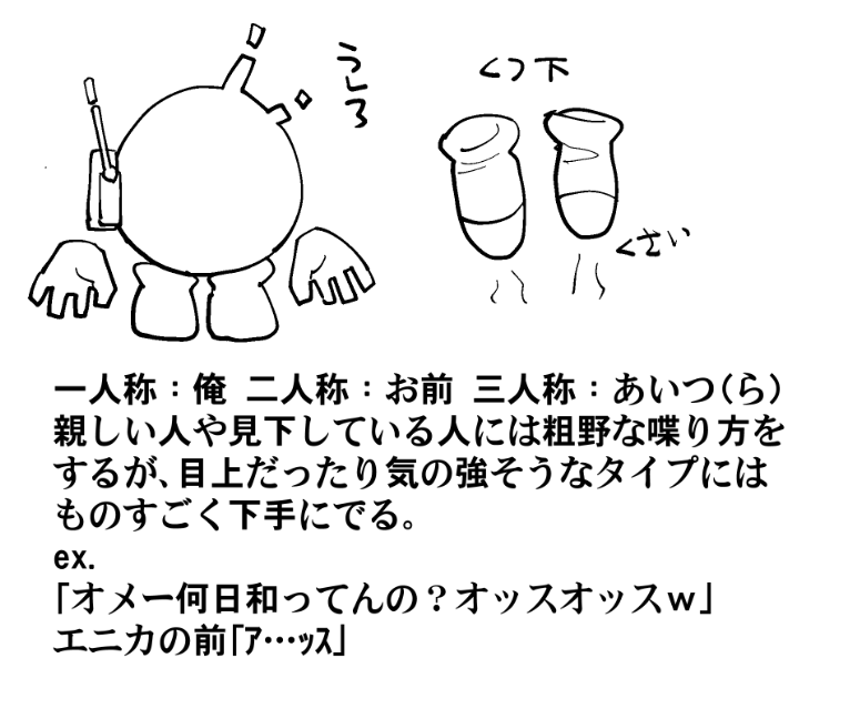 ネット用語をまま喋り、口調がウザい。