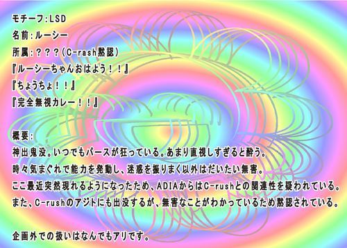また、C-rushのアジトにも出没するが、無害なことがわかっているため黙認されている。
